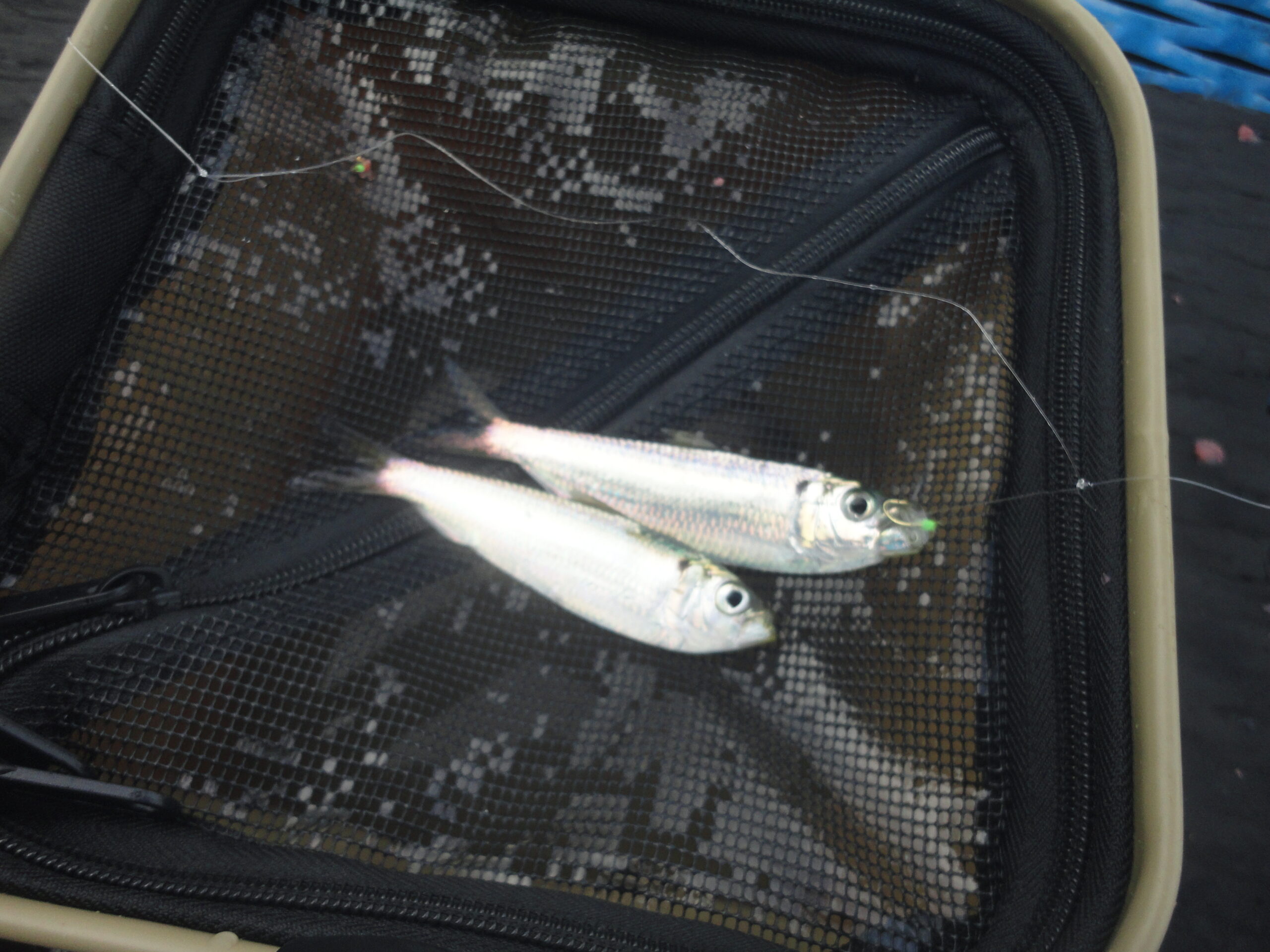 釣果はアジ・アイゴ・コノシロ・キス・サヨリ・セイゴ・イワシ・クロダイ・カイズなどが釣れていました。
