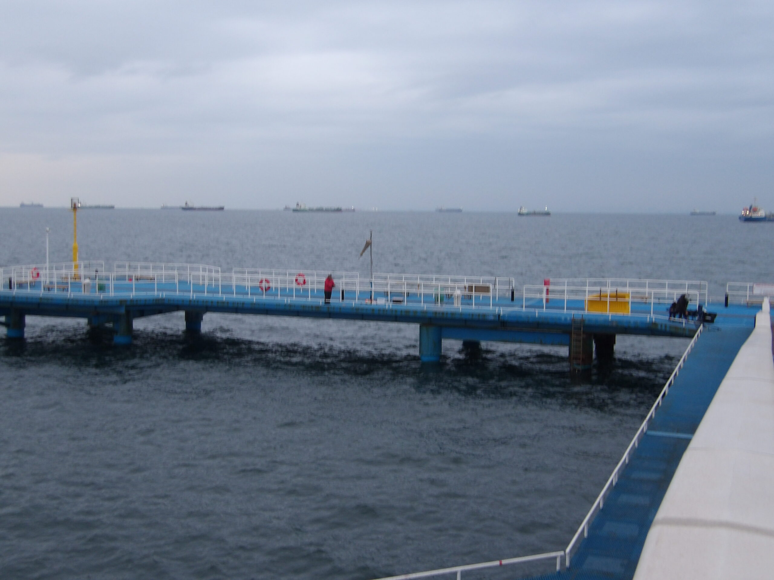 終日、冷たい北風が吹く雨模様の桟橋でした。