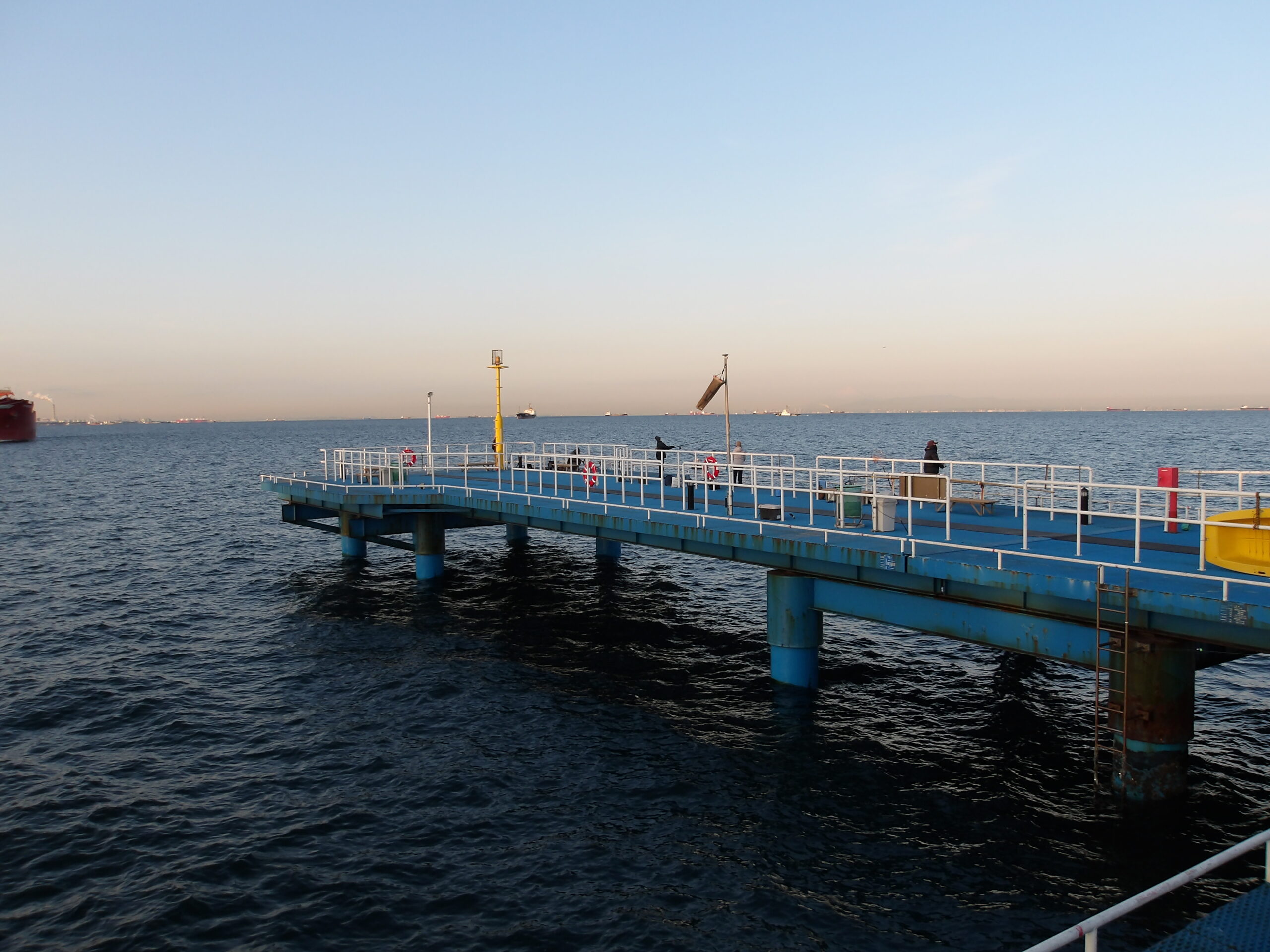 午後になり冷たい南西の風が吹く桟橋でした。