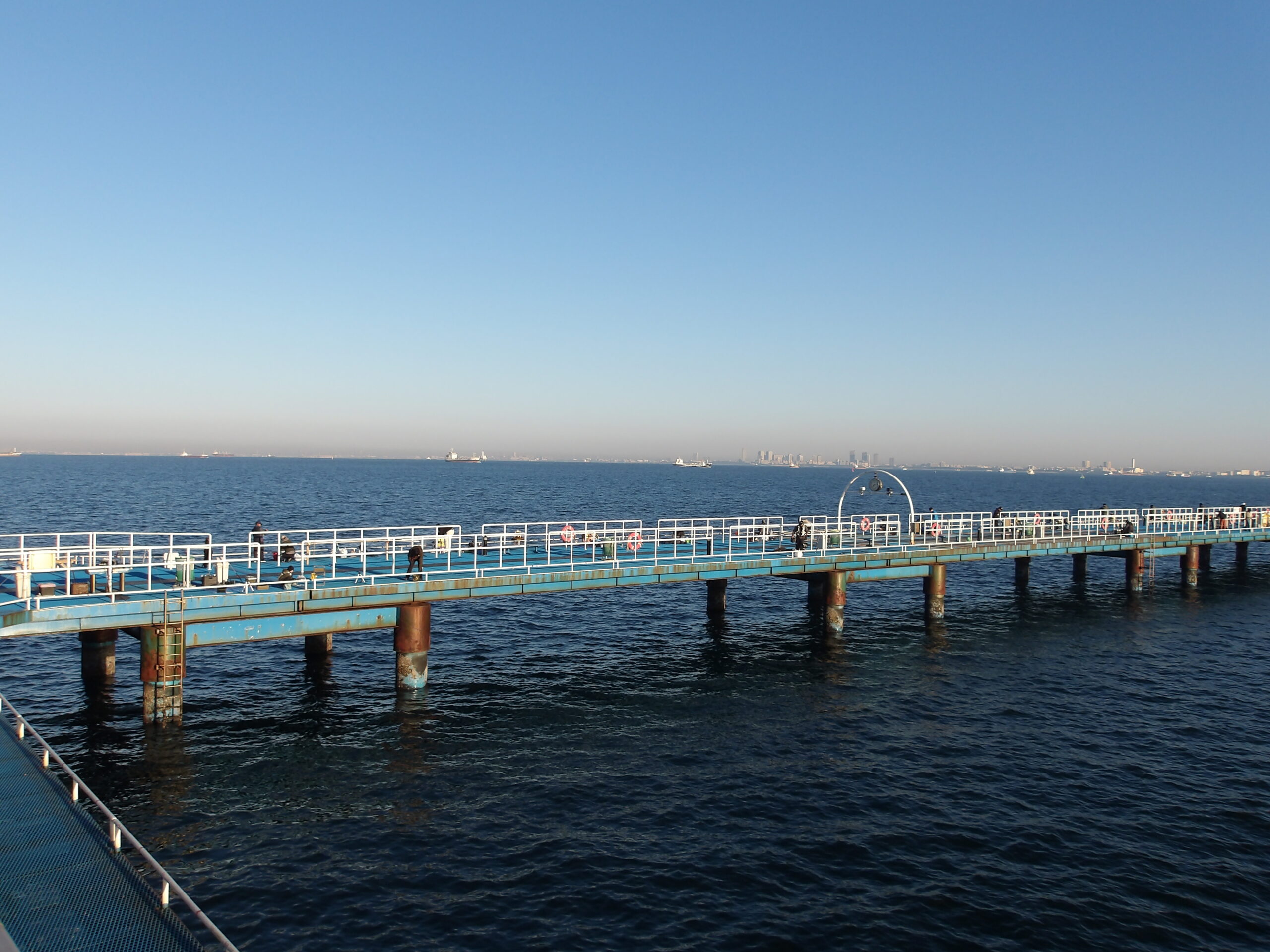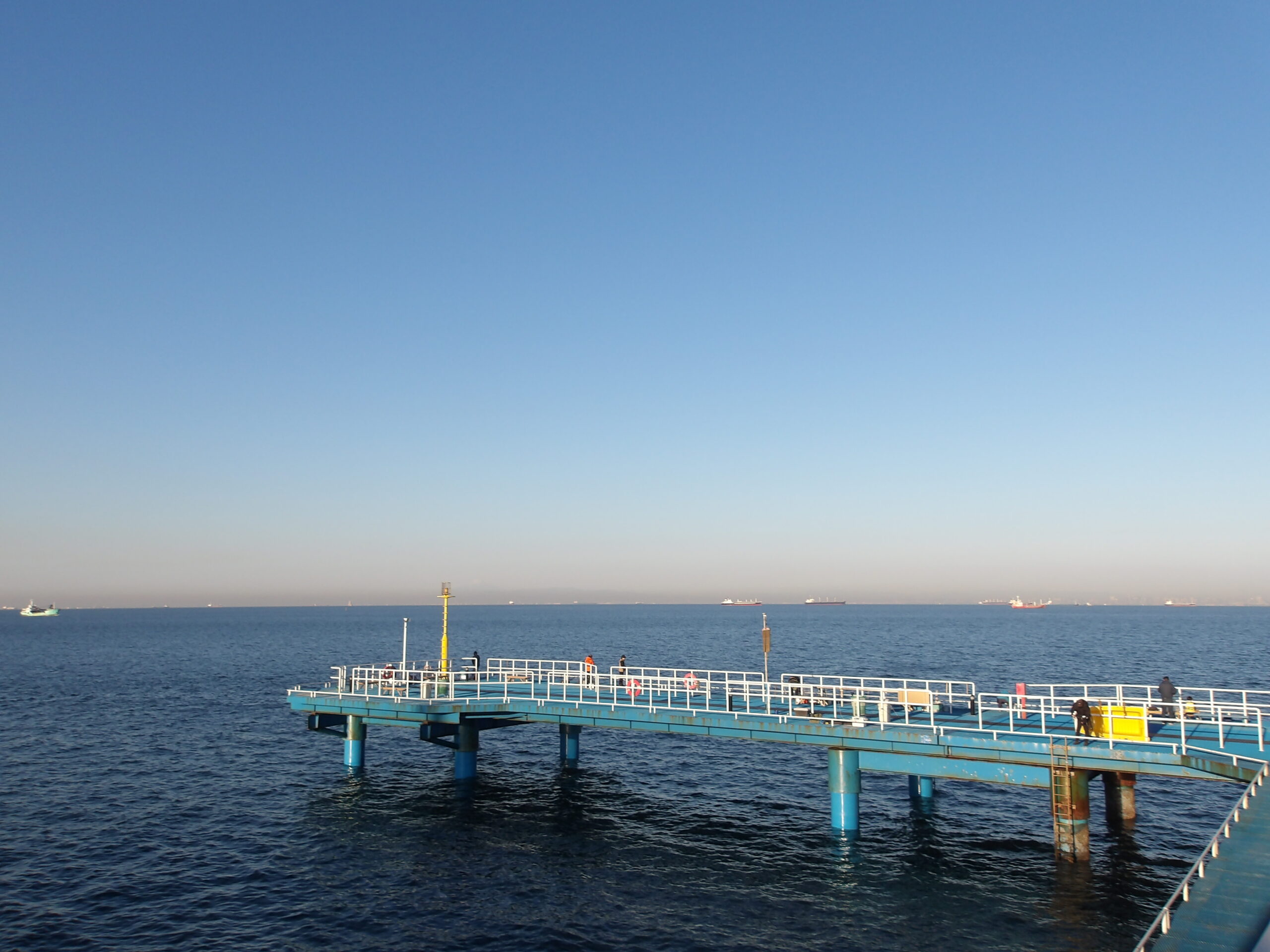 秋晴れに恵まれた清々しい釣り日和の桟橋でした。