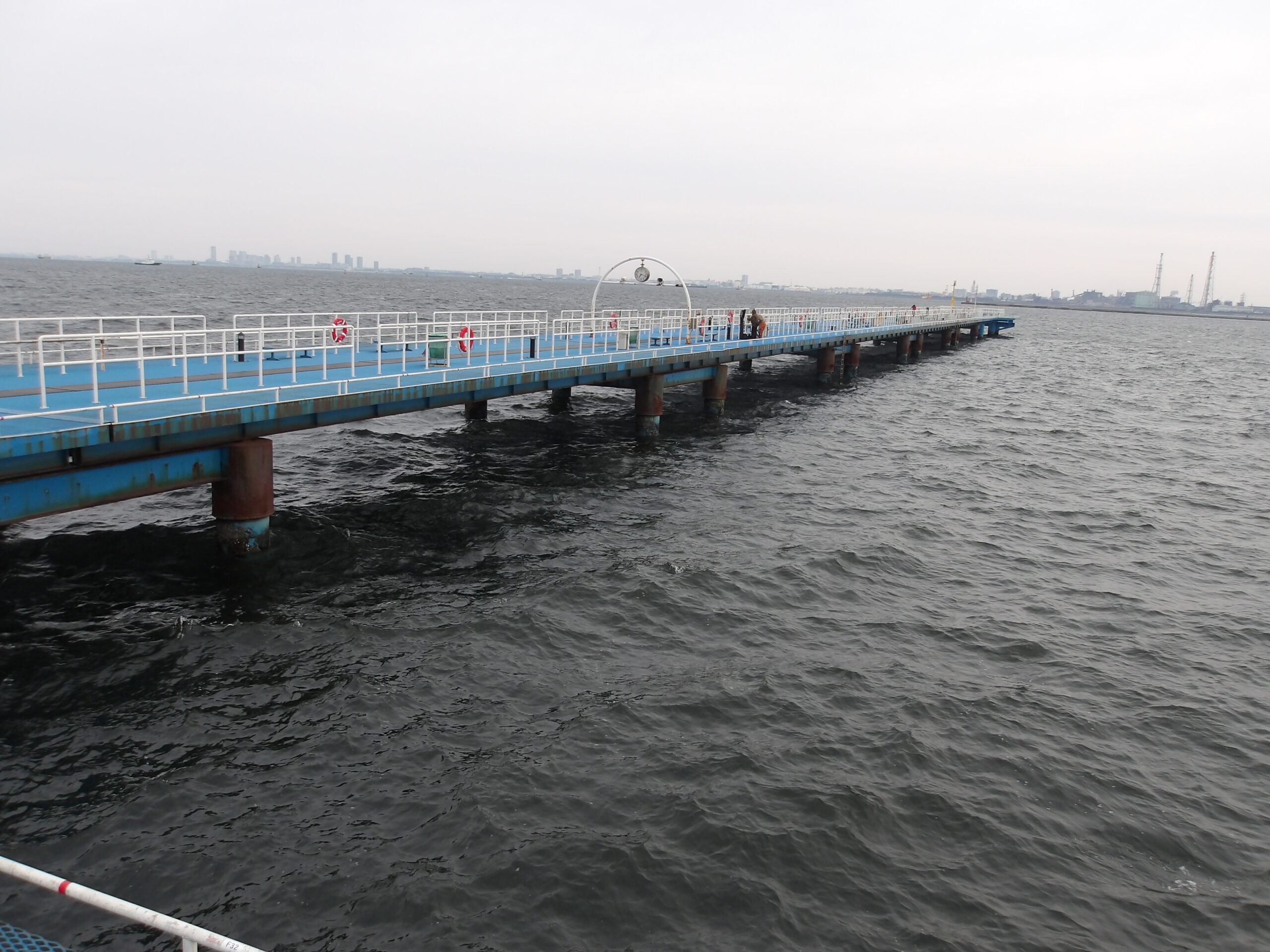 曇り空で北より風がやや強く吹く寒い桟橋でした。
