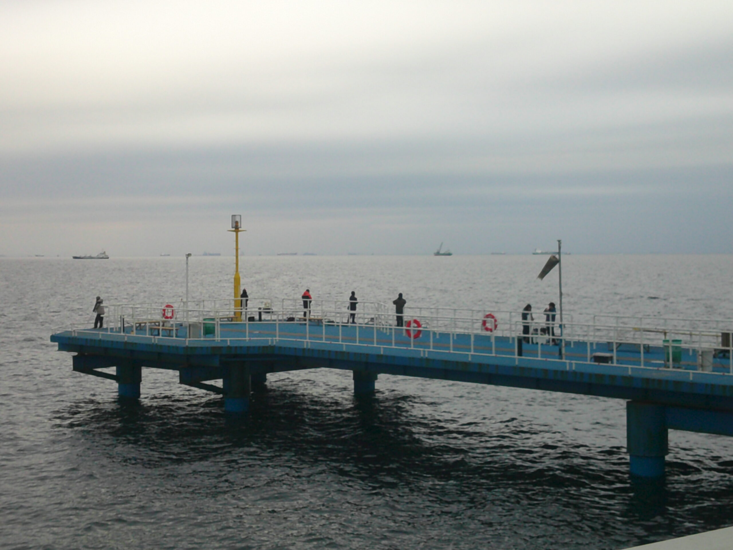 曇天で冷たい北寄りの風が吹く寒い桟橋でした。